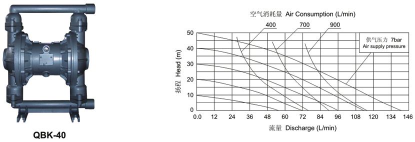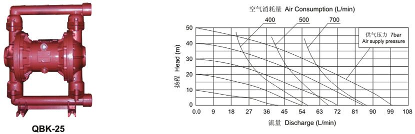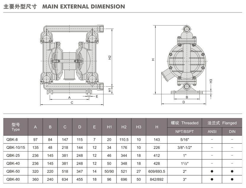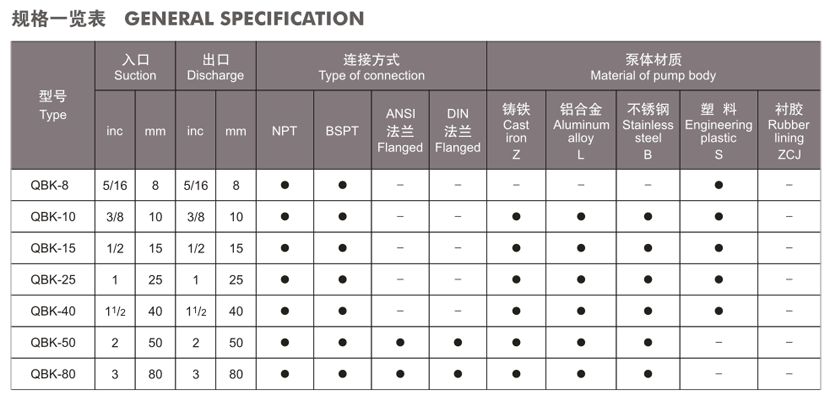 QBK第三代氣動(dòng)隔膜泵規(guī)格表: