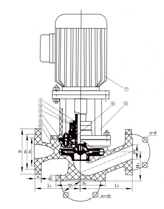 1 軸 2 軸套 3 機(jī)械密封 4 泵蓋 5 葉輪 6 泵體 7 電機(jī)  8 聯(lián)接架 9 密封壓蓋