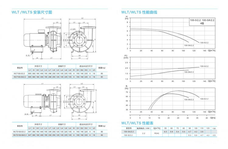 WLT泵軸與電機軸采用同軸聯(lián)接,占地面積小,重量輕;WLTS采用直聯(lián)型聯(lián)接加長軸結(jié)構(gòu)。
