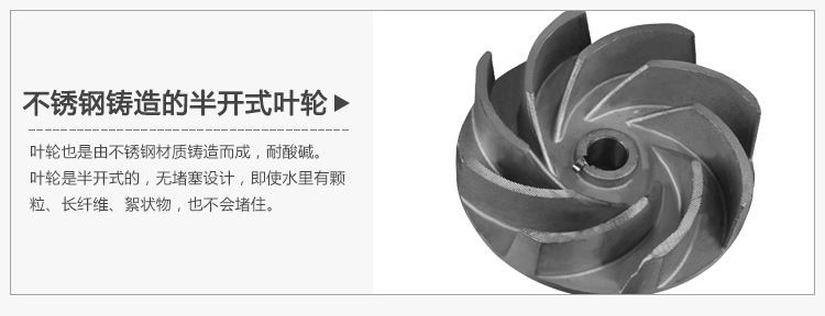 1、整體外殼采用不銹鋼SUS304 SUS316材質(zhì)精密鑄造制成,專門抽取有微酸弱堿的污水。