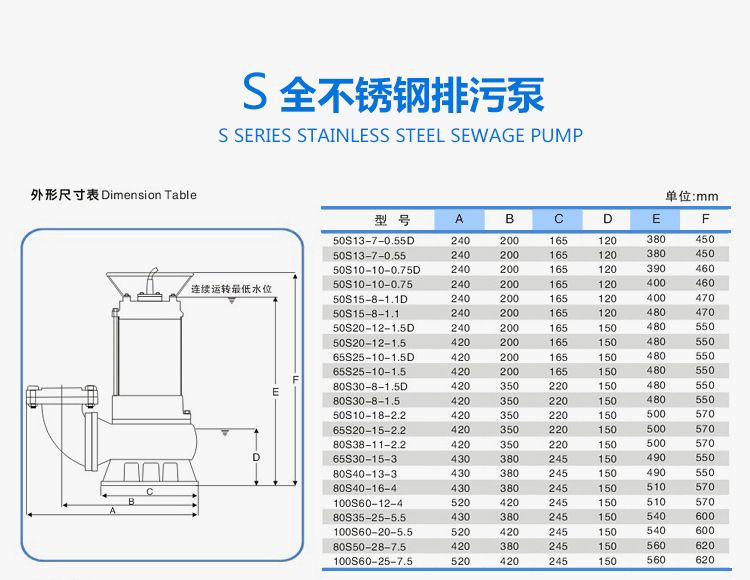 一、S系列整體不銹鋼排污泵--產(chǎn)品簡介: