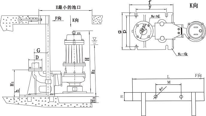 七、WQ型無堵塞潛水排污泵--安裝尺寸: