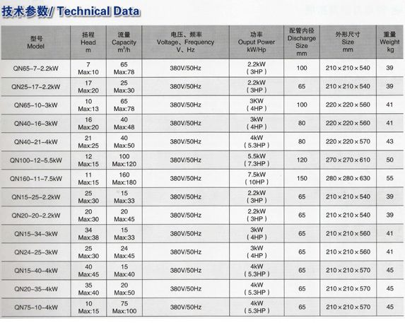 QSP65-7-2.2KW | 65 | 7 | 100 | 380 | 21*21*54 | 39 |