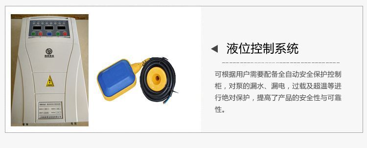 6。根據(jù)用戶需要,可配備全自動(dòng)安全保護(hù)控制柜,以監(jiān)測(cè)泵的漏水,漏水,過載和超溫情況,以確保泵的可靠,安全運(yùn)行。
