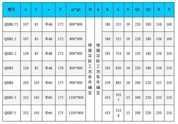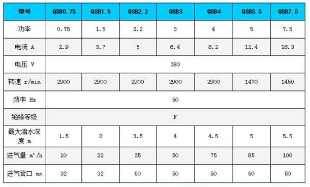 注:表中進(jìn)氣量及增氧能力是在標(biāo)準(zhǔn)試驗條件下(20°C水溫,氣壓101.325kPa),曝氣機(jī)潛水深度3m,試驗介質(zhì)為清水。在中度污水中,增氣能力可按系數(shù)0.85作為設(shè)計依據(jù)。