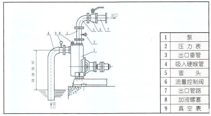 b. 吸入管路中的閥門、法蘭等應嚴防漏氣或滲漏液體,即吸入管路不允許有漏氣現(xiàn)象存在。