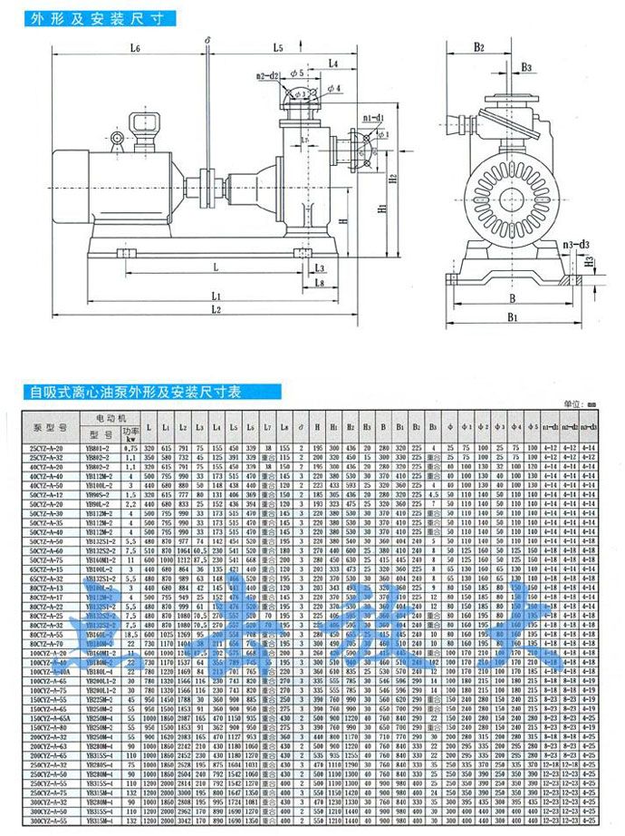 四、CYZ-A型自吸式離心油泵--型號參數(shù):