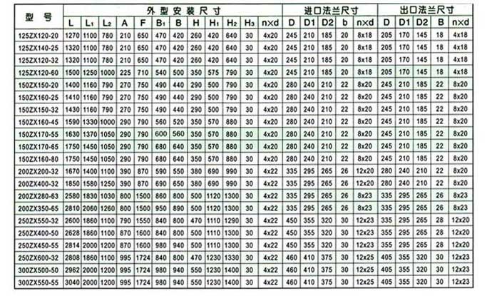 ZX系列臥式自吸離心泵(安裝尺寸)
